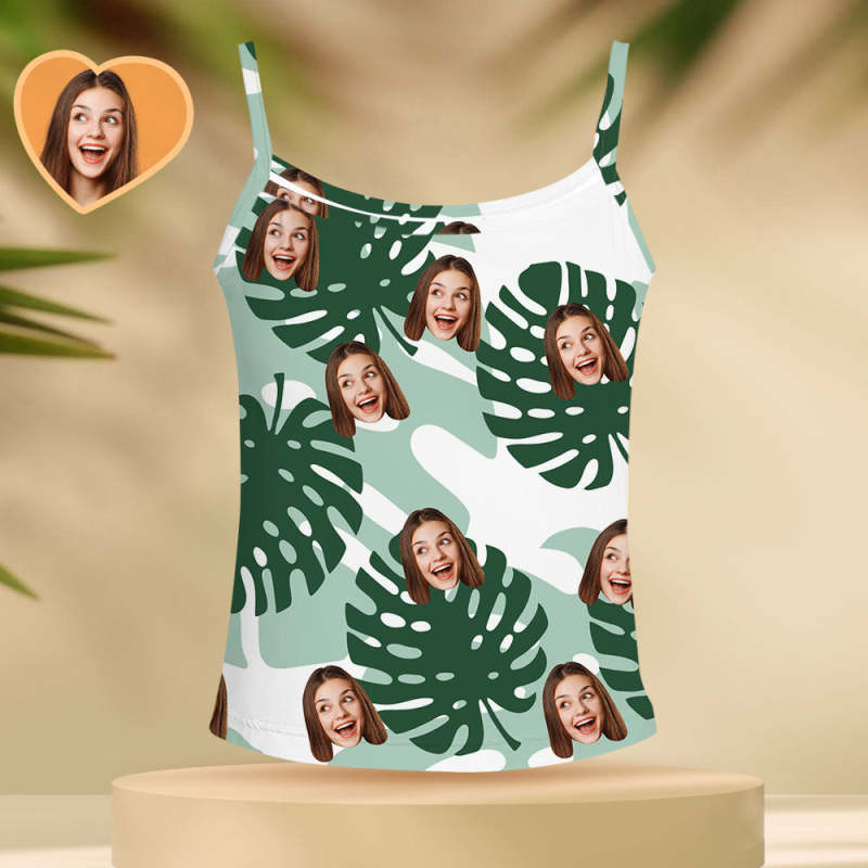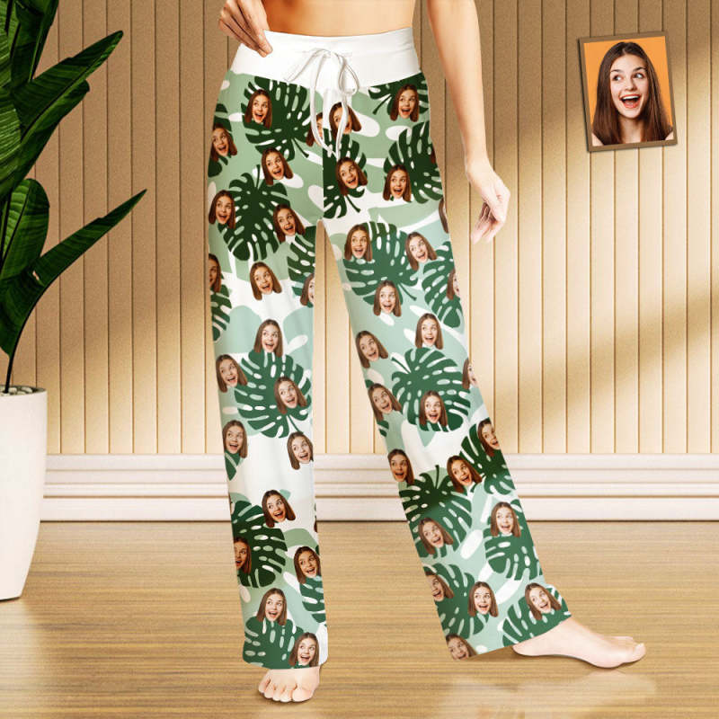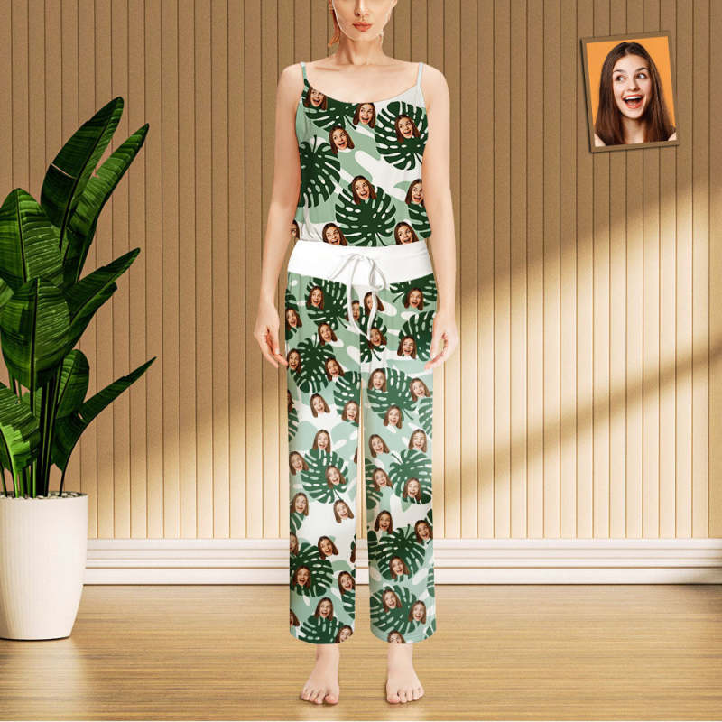 Custom Face Pajama Personalized Palm Leaves Loungewear