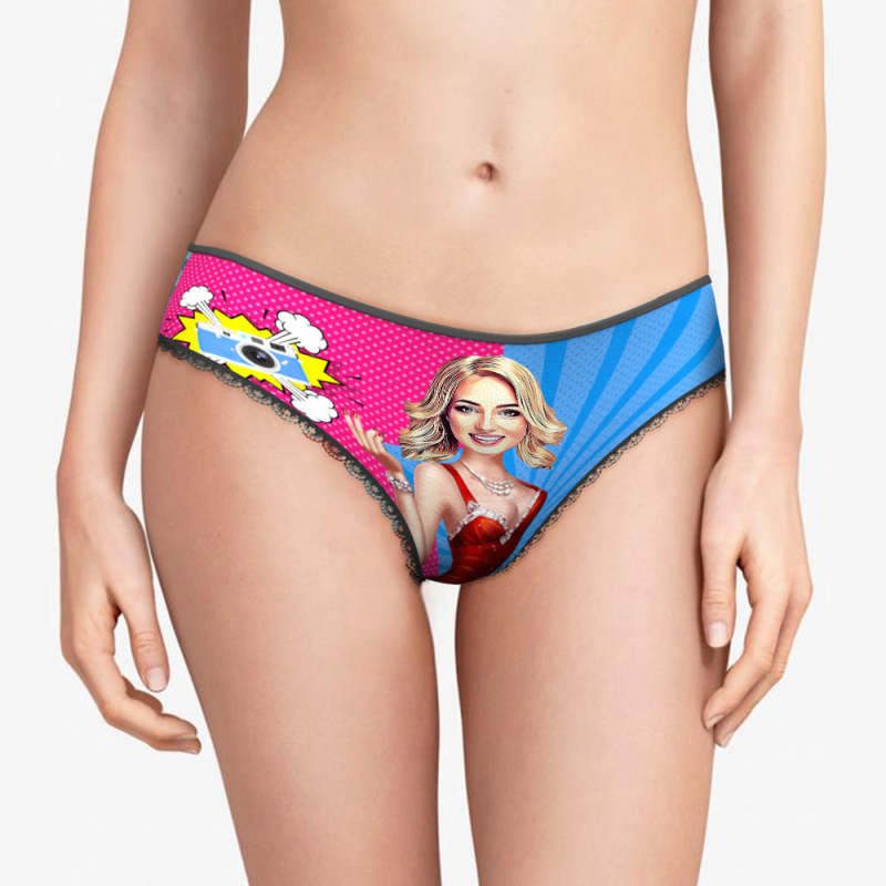 Step into a world of unique and personalized lingerie! Introducing our Custom Cartoon-Style Lace Panties for women, where your photos transform into playful cartoon portraits seamlessly blended with a cartoon bombshell's body, adding a touch of humor and allure to your intimate wear.