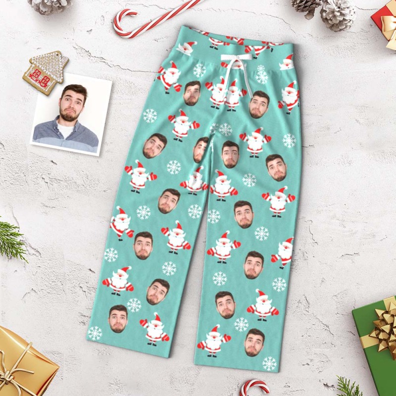 Custom Face Pants Ladie's Loose Wide-leg Pajama Pants Santa Claus Merry Christmas - My Photo Socks AU Custom Face Pants Ladie's Loose Wide-leg Pajama Pants Santa Claus Merry Christmas - My Photo Socks AU