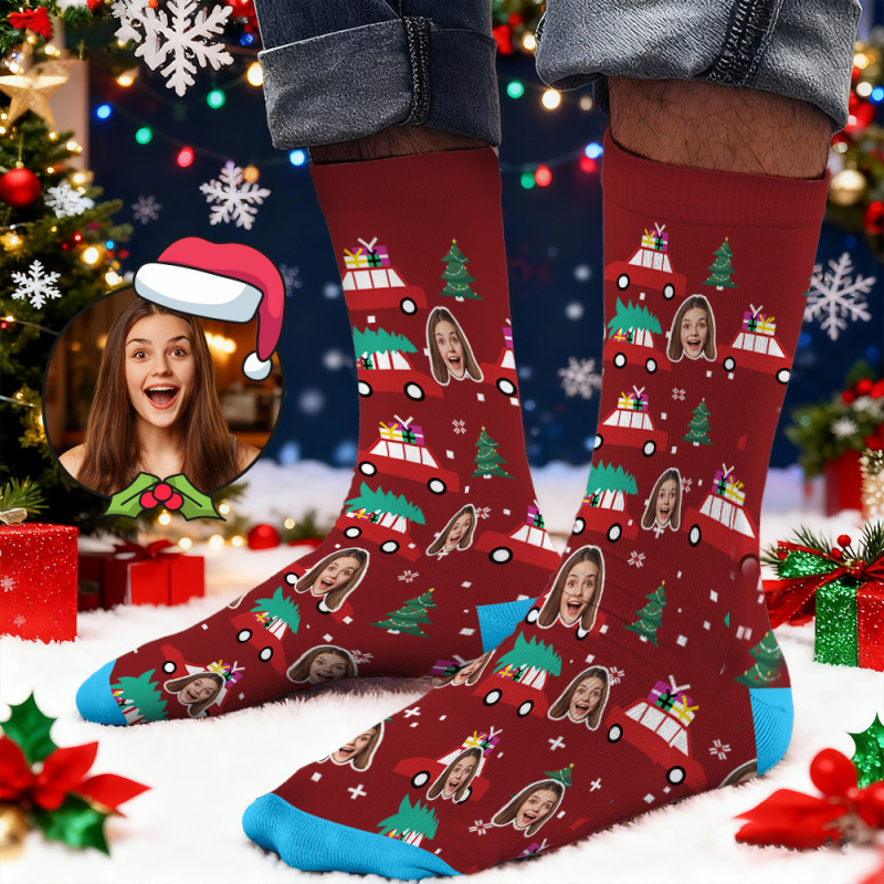 Custom Face Printed Socks Santa Claus in Sunglasses Face Socks Personalized Custom Designs Best Santa Gift Idea