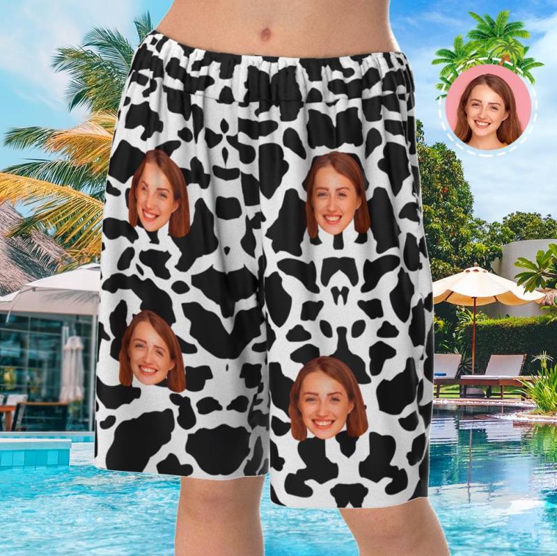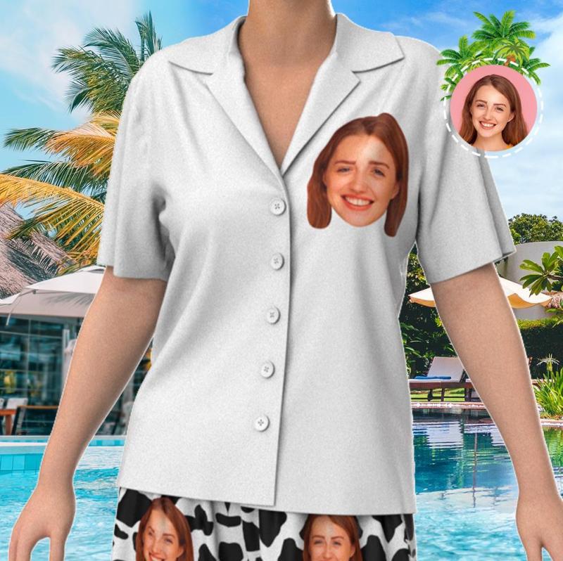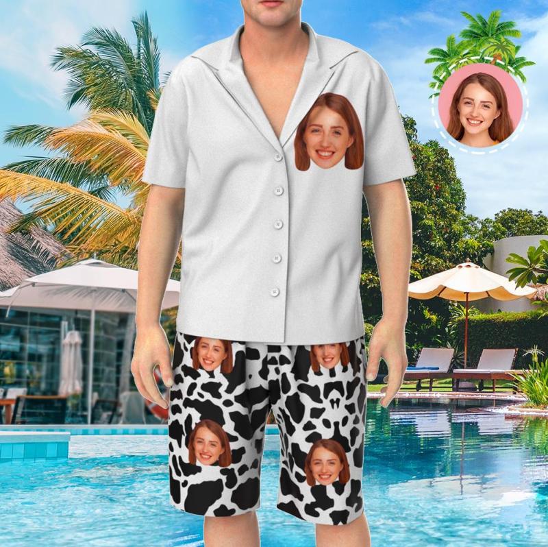 Custom Face Short Sleeve Personalized Pajamas Cute Cartoon Print Cow Pattern Shorts Pajama Set
