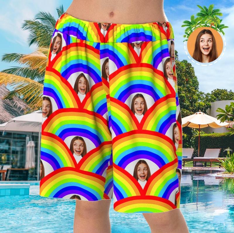 Custom Face Short Sleeve Personalized Pajamas Rainbow Scale Elements