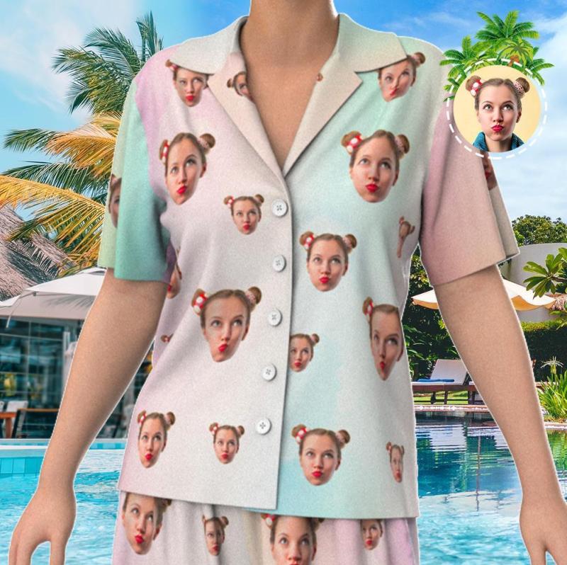 Custom Face Short Sleeve Personalized Tie Dye Pajamas