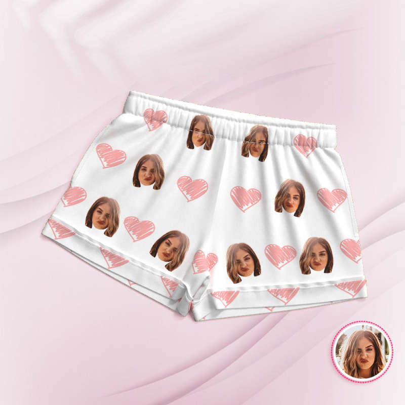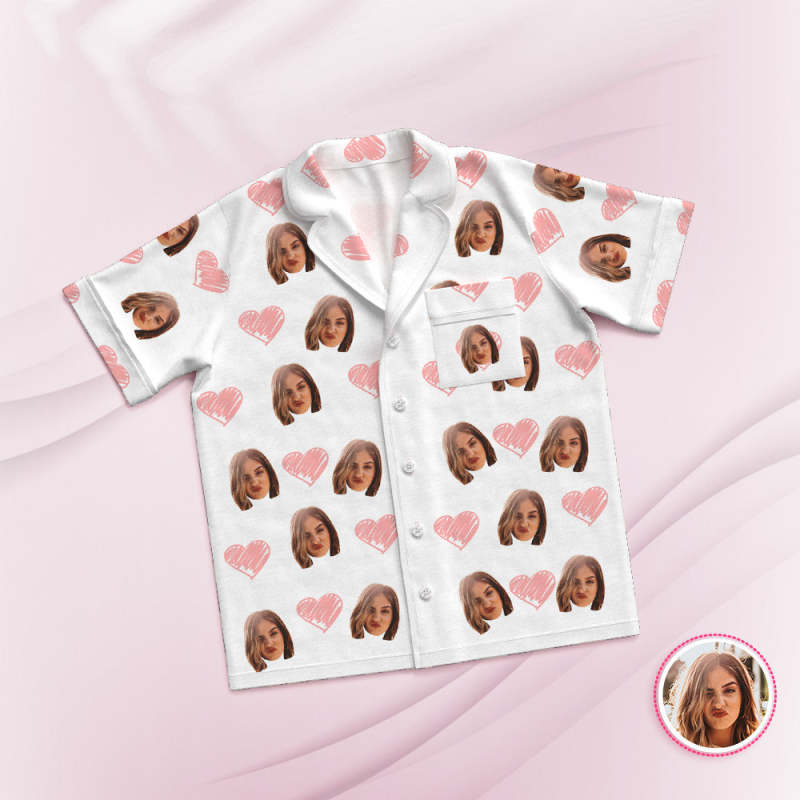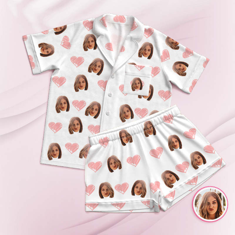Custom Face Short Sleeved Pajamas Personalized Photo White Sleepwear Pink Heart Holiday Gifts