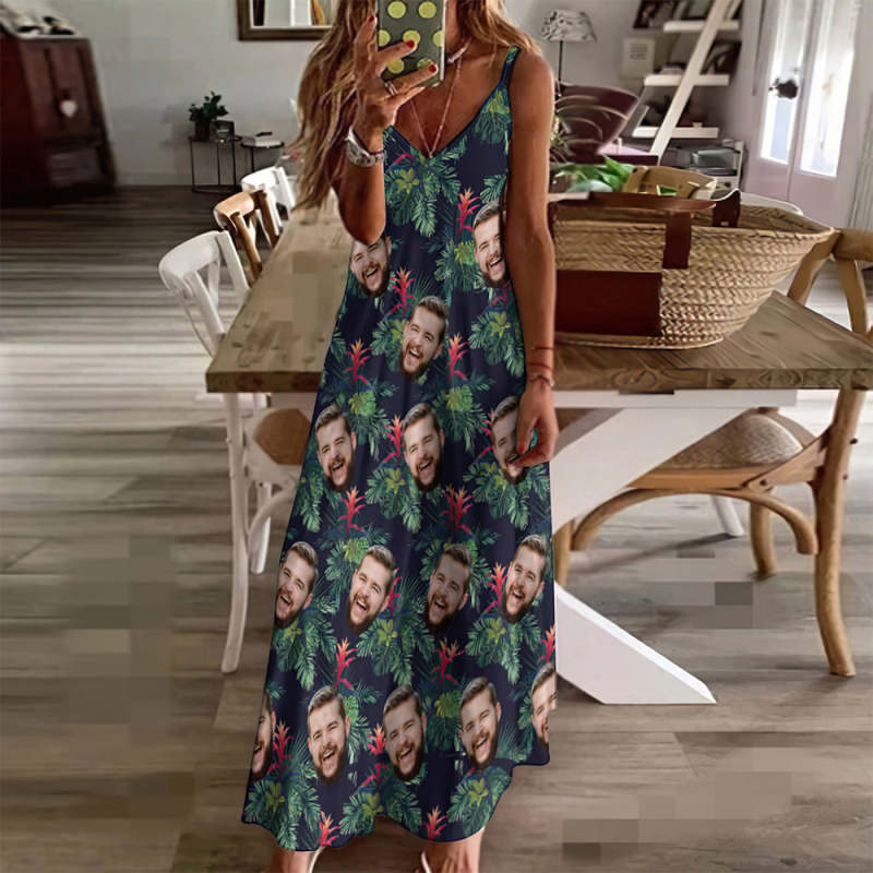 Custom Face Sling Hawaiian Style Long Dress Bromelia