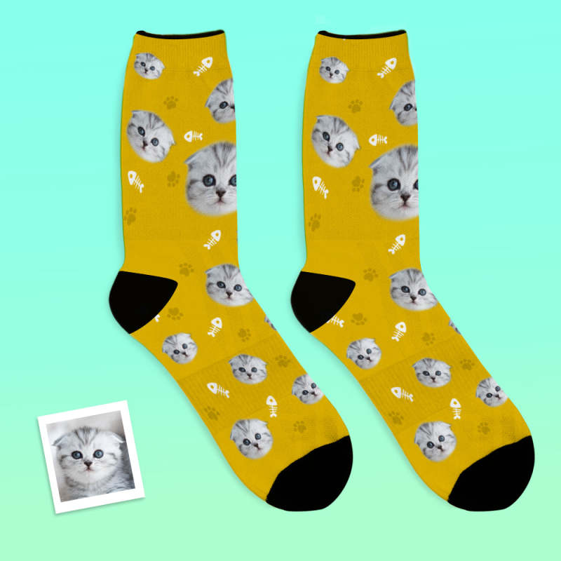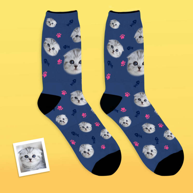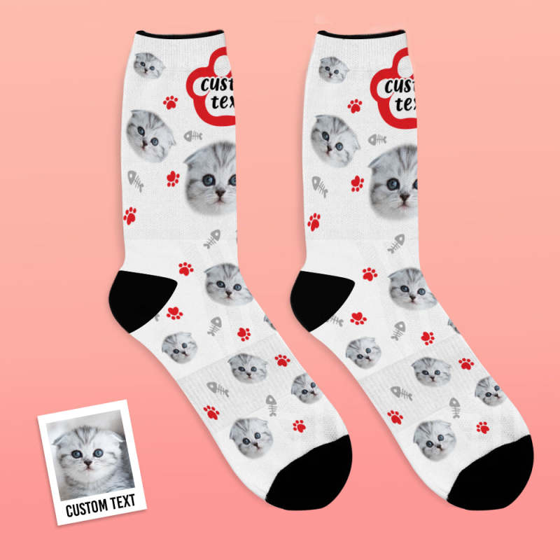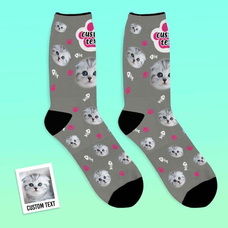 Custom Face Socks Colorful Candy Series Soft And Comfortable Cat Socks - Black