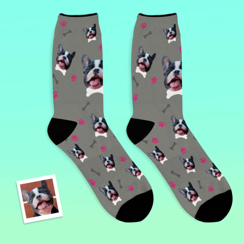 Custom Face Socks Colorful Candy Series Soft And Comfortable Dog Socks - Grey