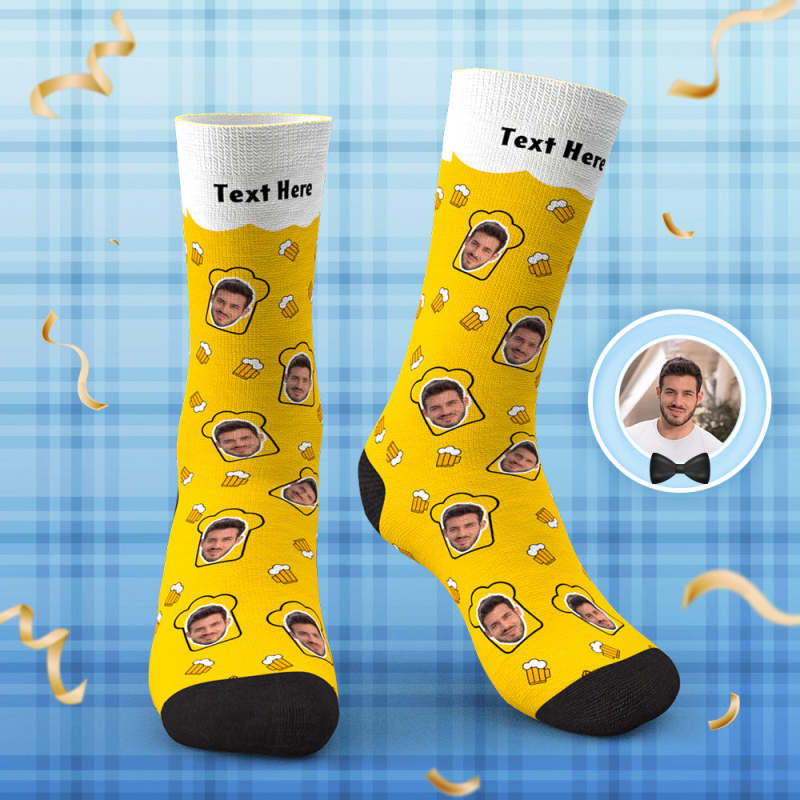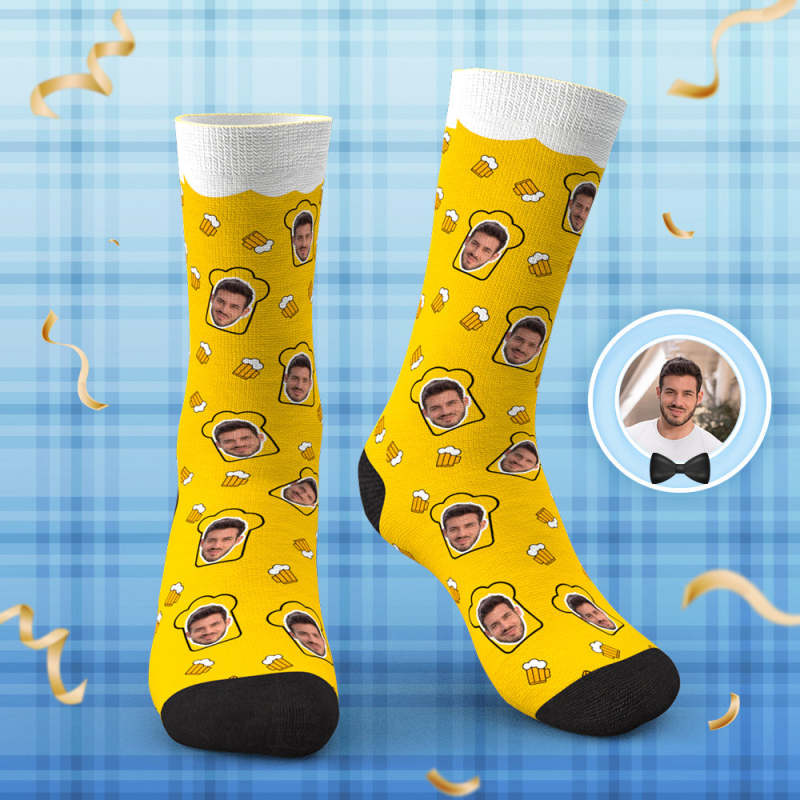 Custom Face Socks Personalised Beer Drinking Father's Day Socks