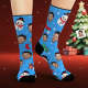 Custom Face Socks Personalized Photo Blue Socks Cartoon Santa Claus and Snowman