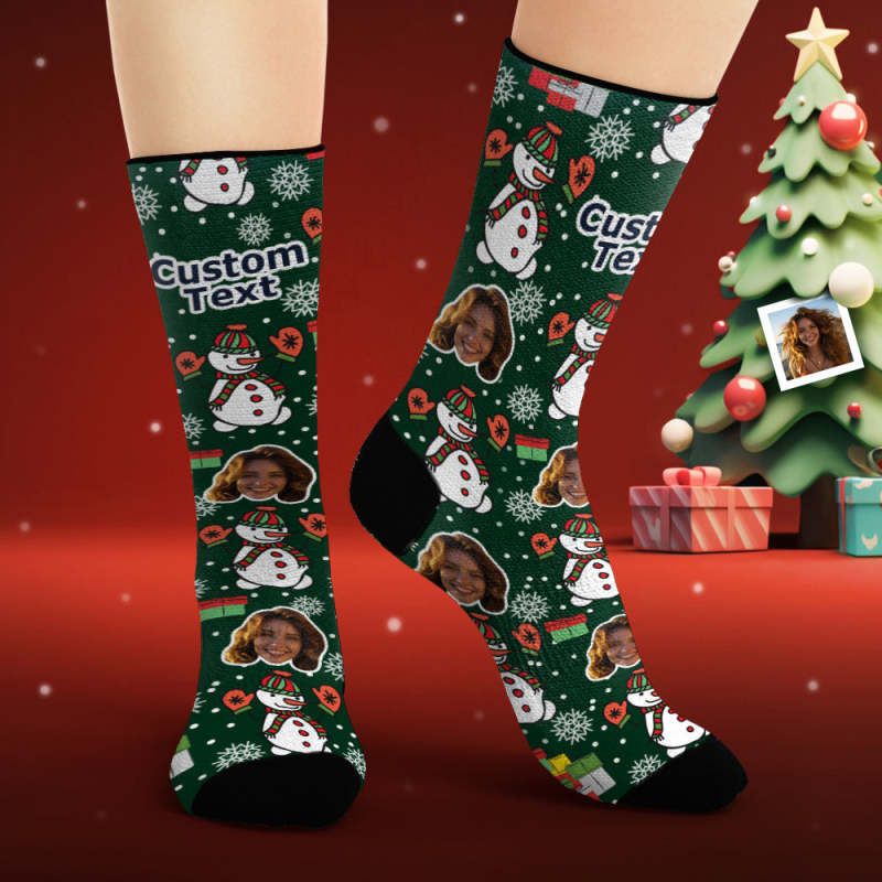 Custom Face Socks Personalized Photo Green Socks Funny Snowman - My Photo Socks AU