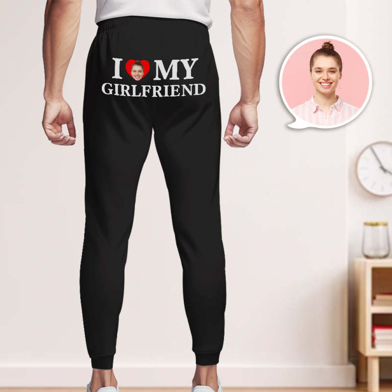Custom Face Sweatpants Personalised I Love My Boyfriend/Girlfriend Printed Sweatpants Valentine's Day Gift for Couple