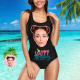 Custom Face Swimwear Women's One Piece Sexy Swimsuit Happy Birthday