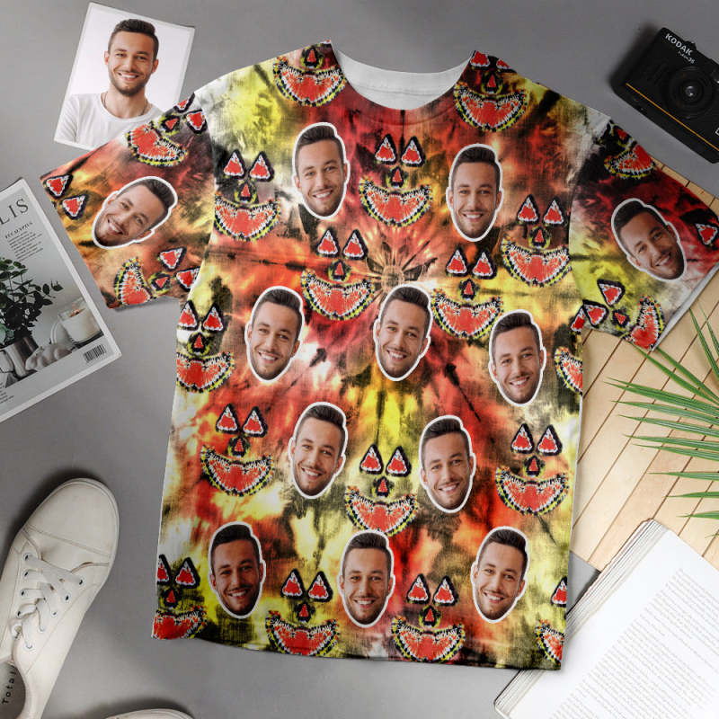 Custom Face Tie Dye Men Pumpkin Smiley T-shirt - My Photo Socks AU Custom Face Tie Dye Men Pumpkin Smiley T-shirt - My Photo Socks AU