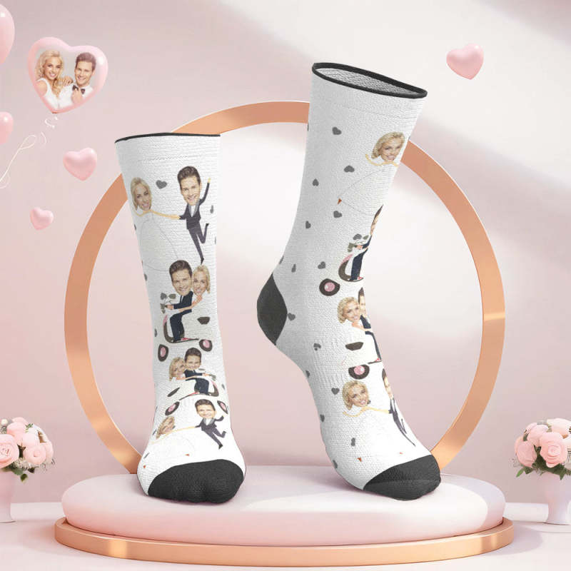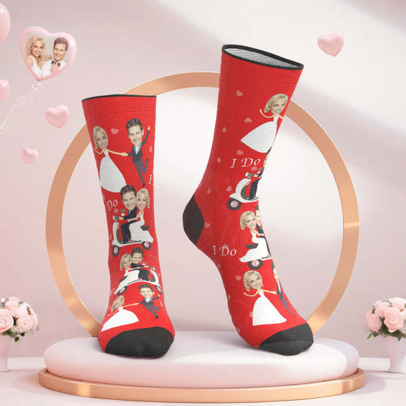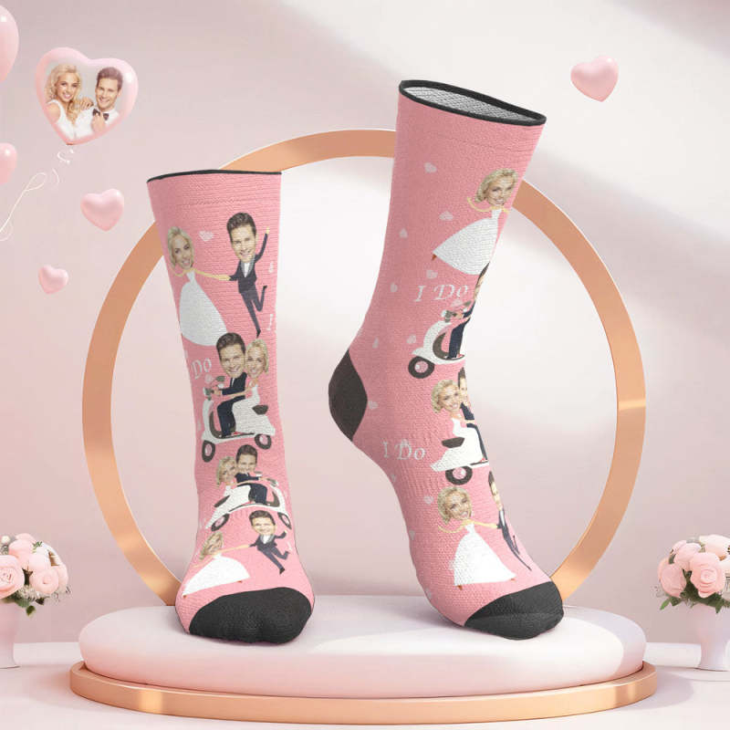 Custom Face Wedding Socks Amour Couple Love Socks I Do