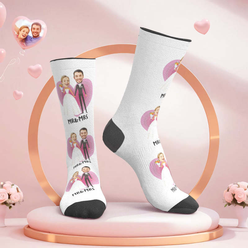 Custom Face Wedding Socks Heart Wedding Gift Wedding Dress