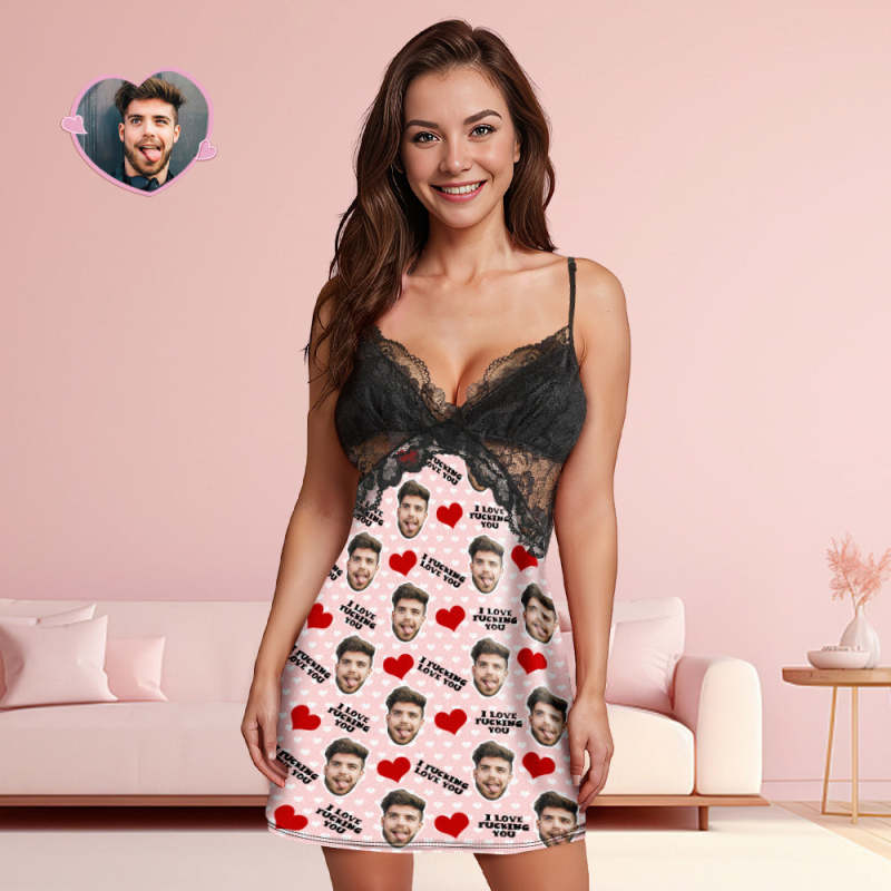 Custom Face Women Lace Sleepwear I Fucking Love You Personalized Photo Nightwear Gift for Her