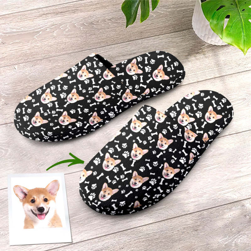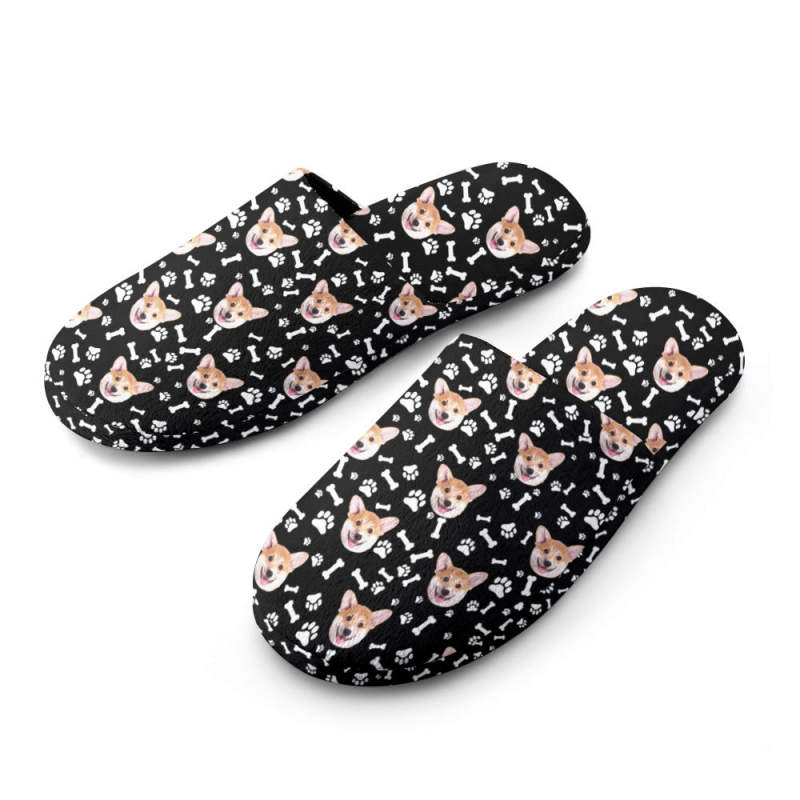 Custom Face Women's and Men's Slippers Personalized Paw Print Casual House Shoes Indoor Outdoor Bedroom Cotton Slippers