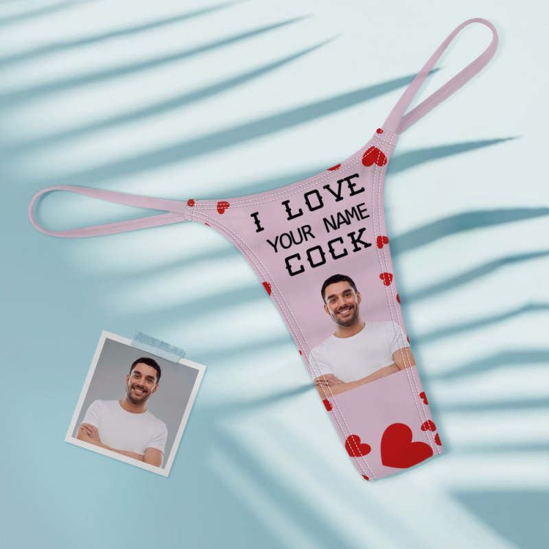 Custom Face Women's Colorful Tanga Thong Valentine's Day Gift I Love Your Cock