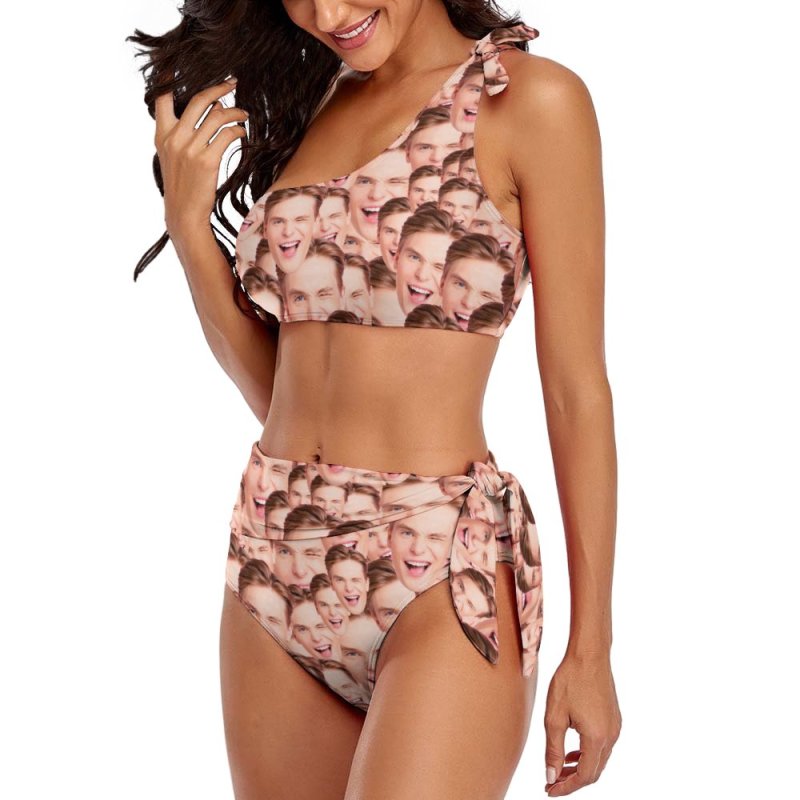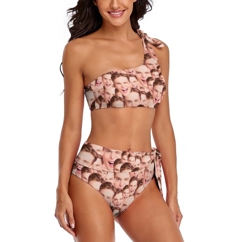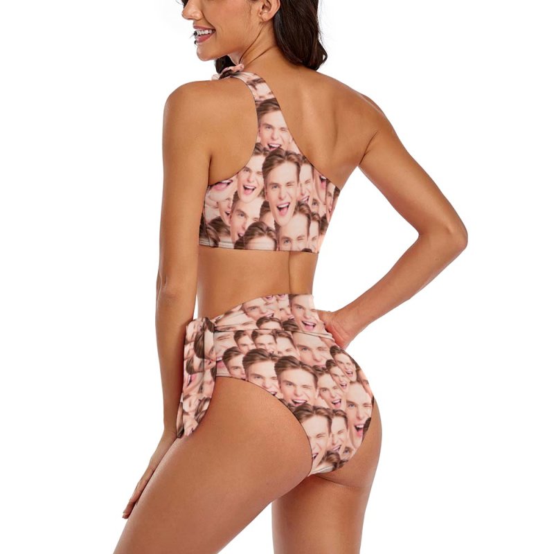 Custom Face Women's One Shoulder Face Mash High Waisted Bikini
