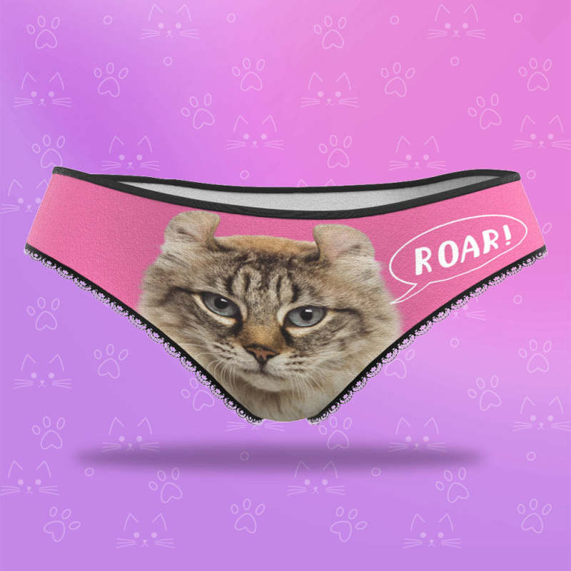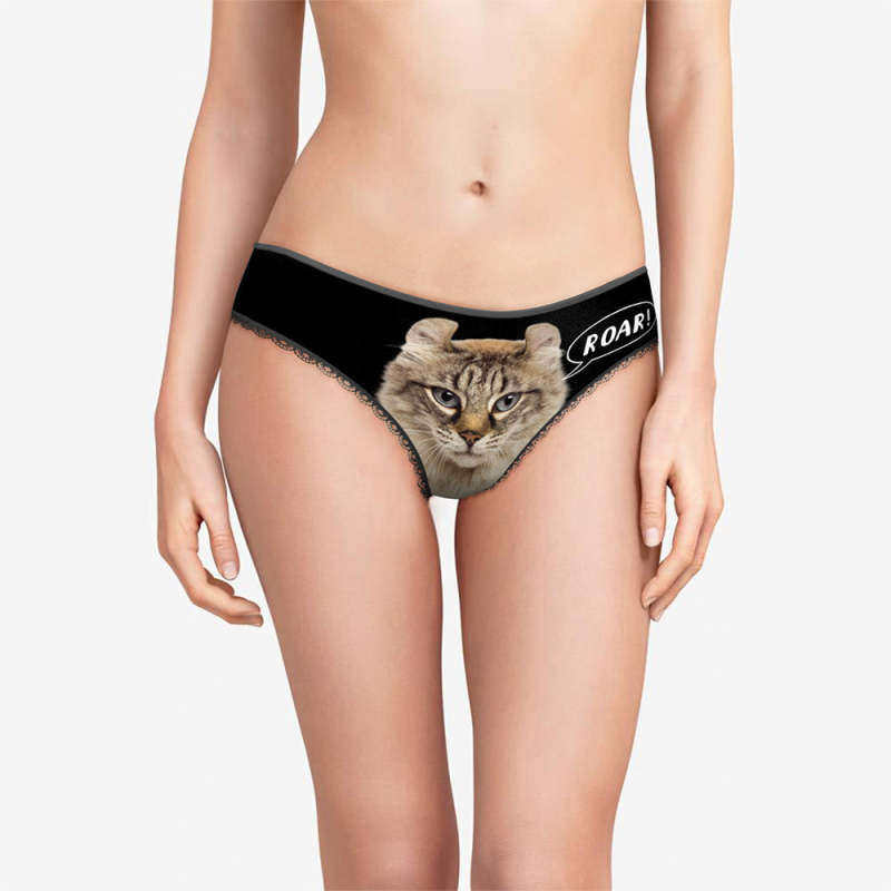 Custom Face Women's Panties Sexy Funny Naughty Animal Cat Roar Gifts For Her