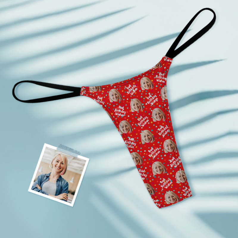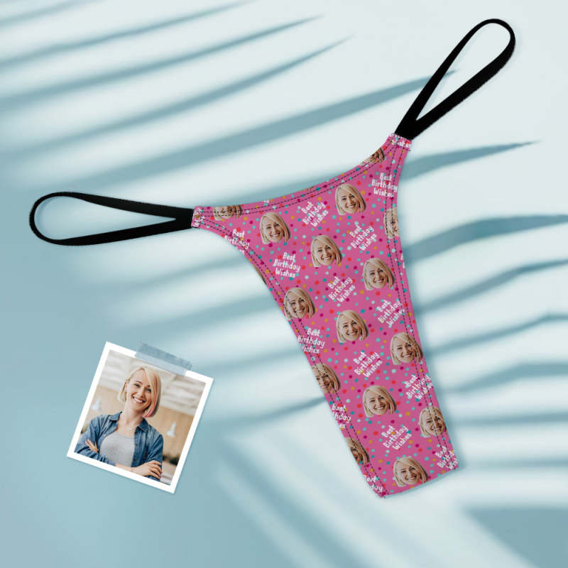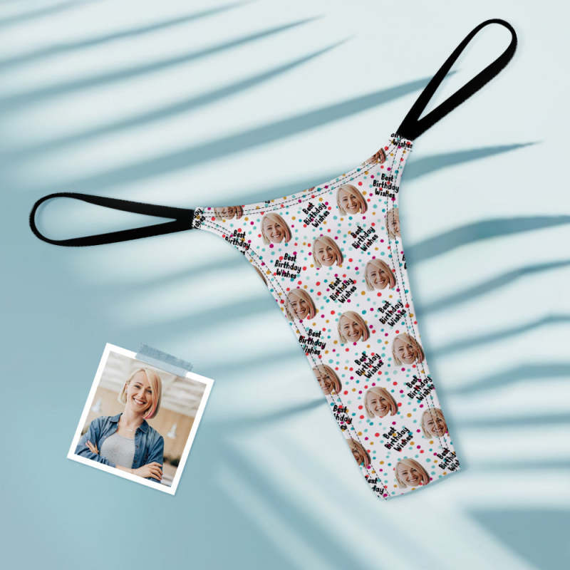 Custom Face Women's Tanga Best Birthday Wishes Thong