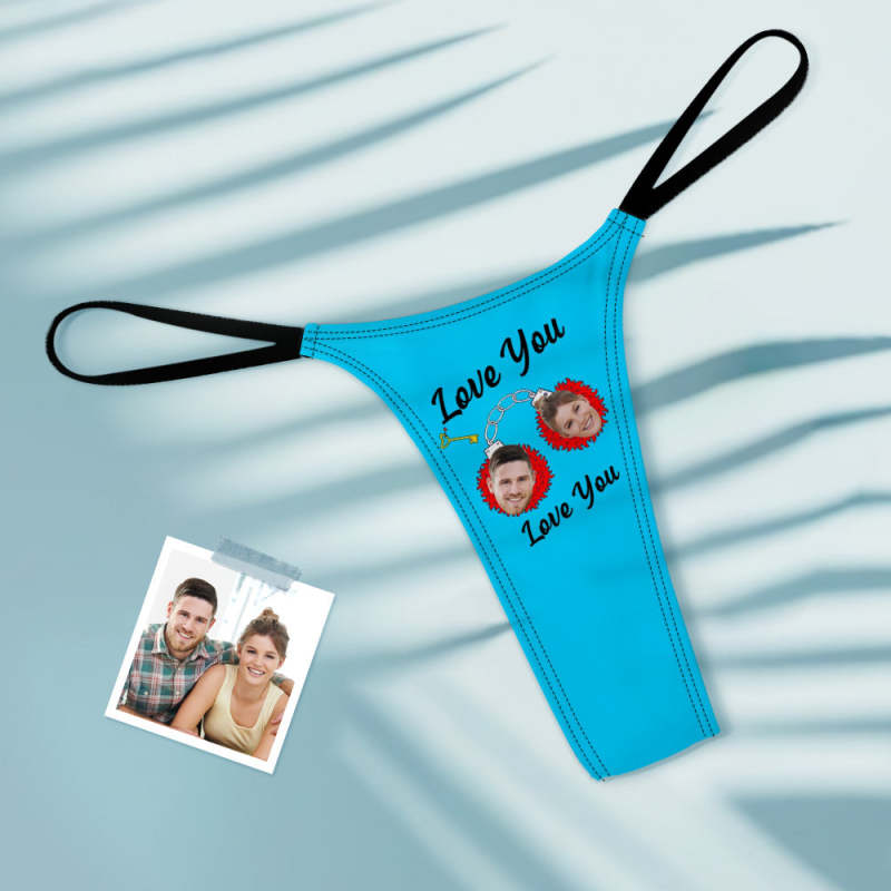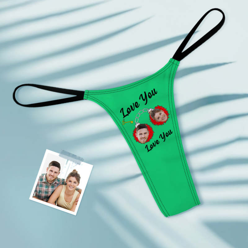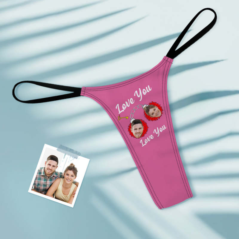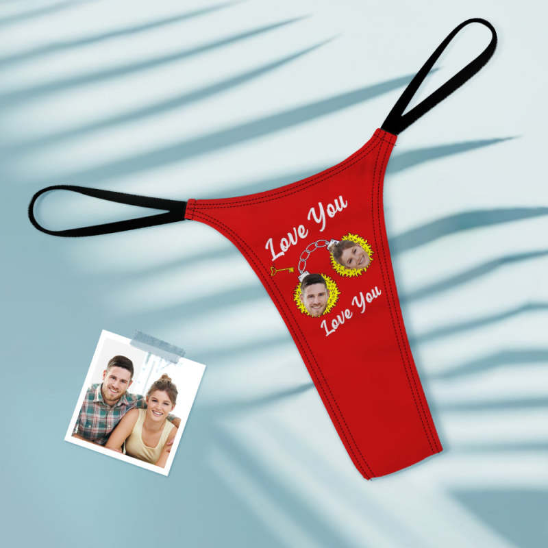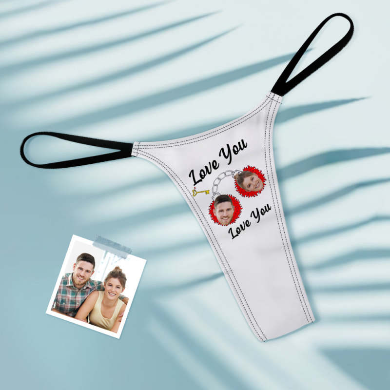 Custom Face Women's Tanga Handcuffs love You Thong