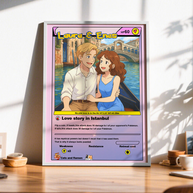 I create a custom cartoon-style portrait based on your photo, designed like a retro blister-packaged toy, complete with accessories and your name on the packaging.