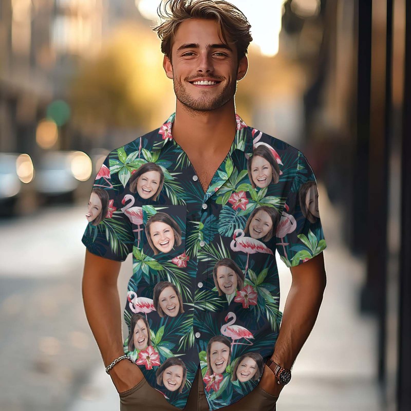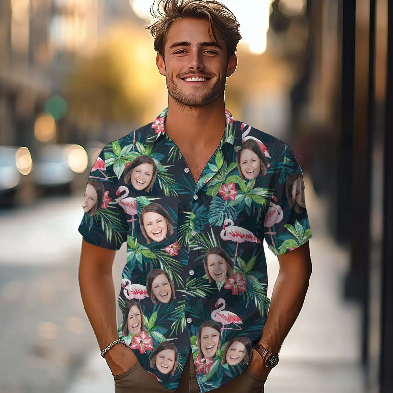 This Hawaiian shirt features print,button up closure,short sleeve.