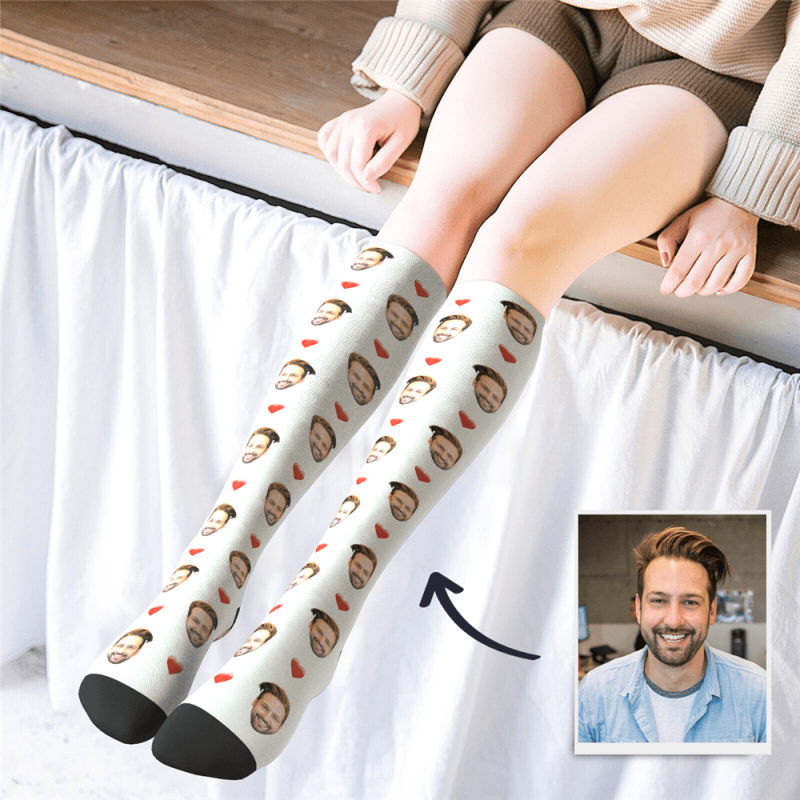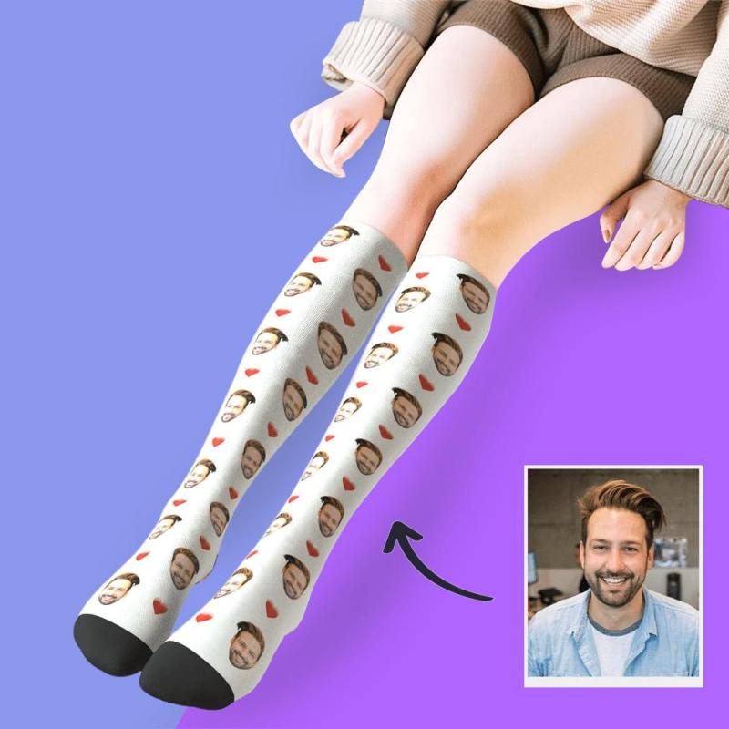 Custom Photo Knee High Face Socks Heart