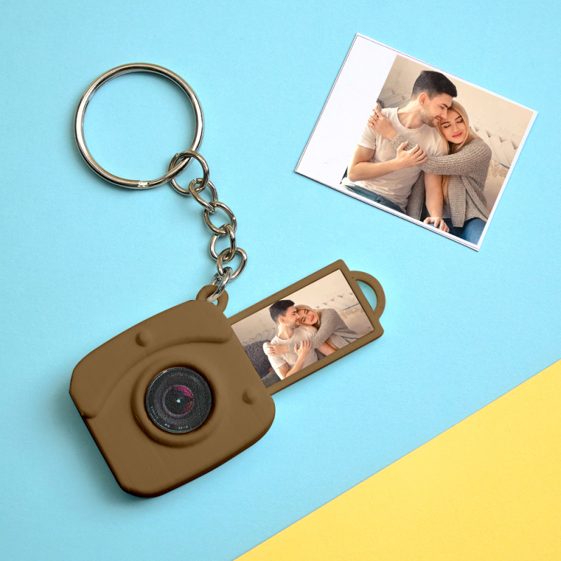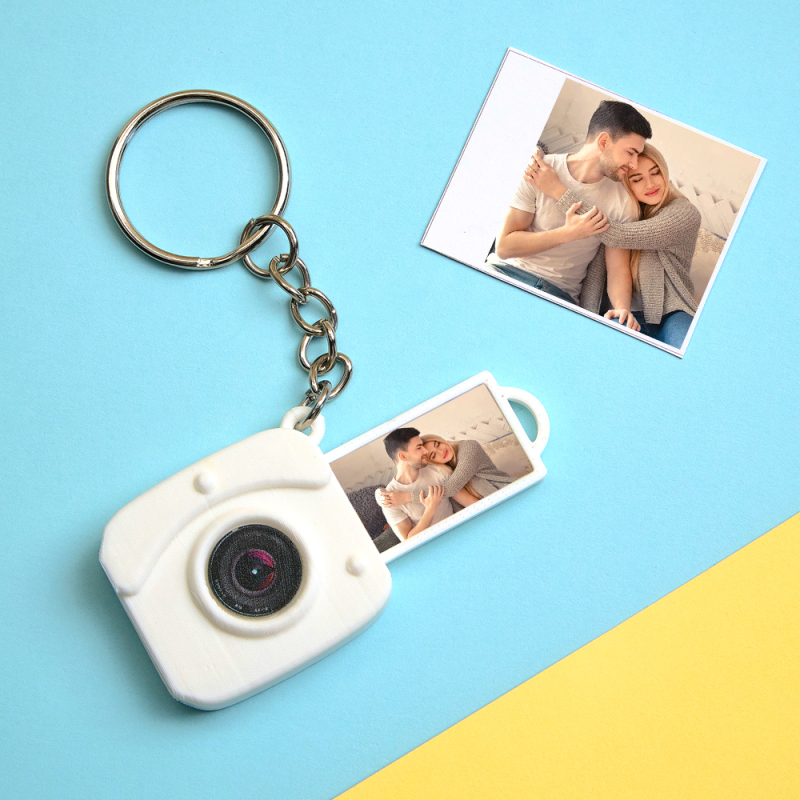 Capture memories in style with this Custom Mini Camera Keychain - a trendy and personalized accessory designed for everyday use. Featuring your favorite photo, this tiny camera-shaped charm makes a unique keepsake or gift for photography lovers.