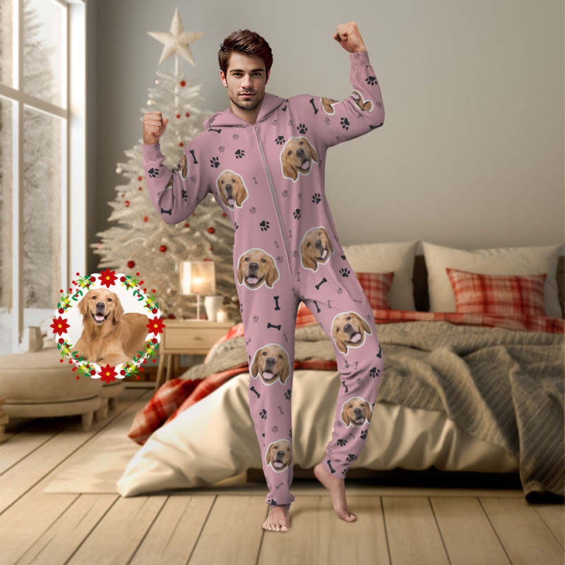 Custom Face Paw Print Onesies Christmas Pajamas One-Piece Sleepwear Christmas Gift
