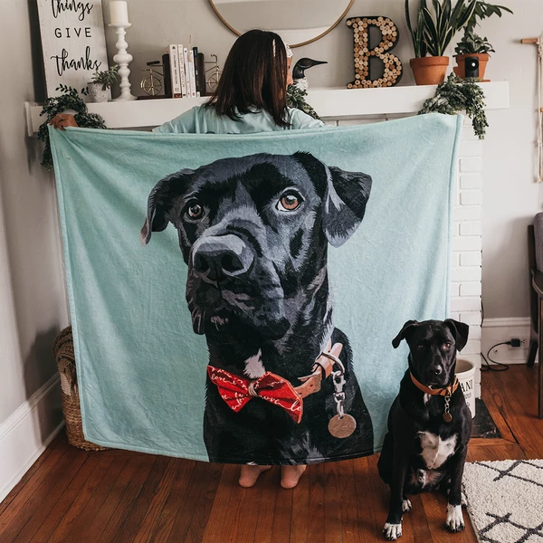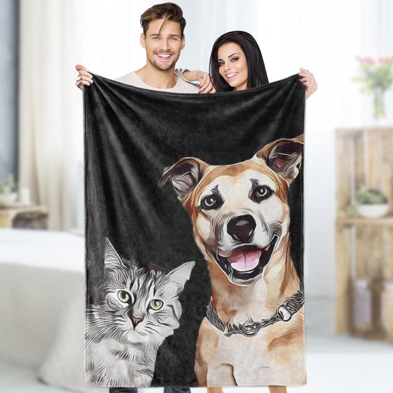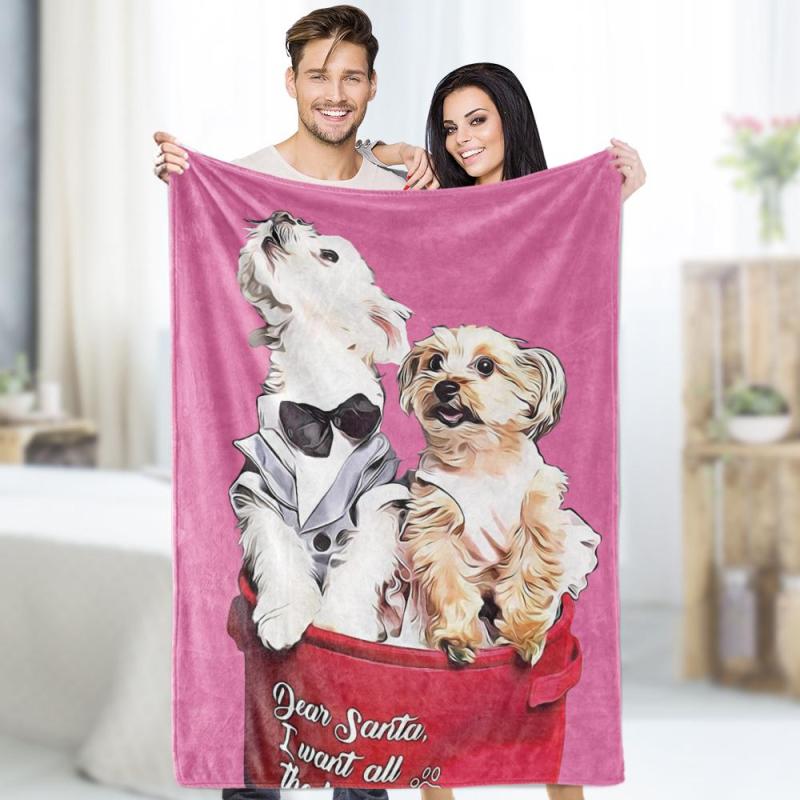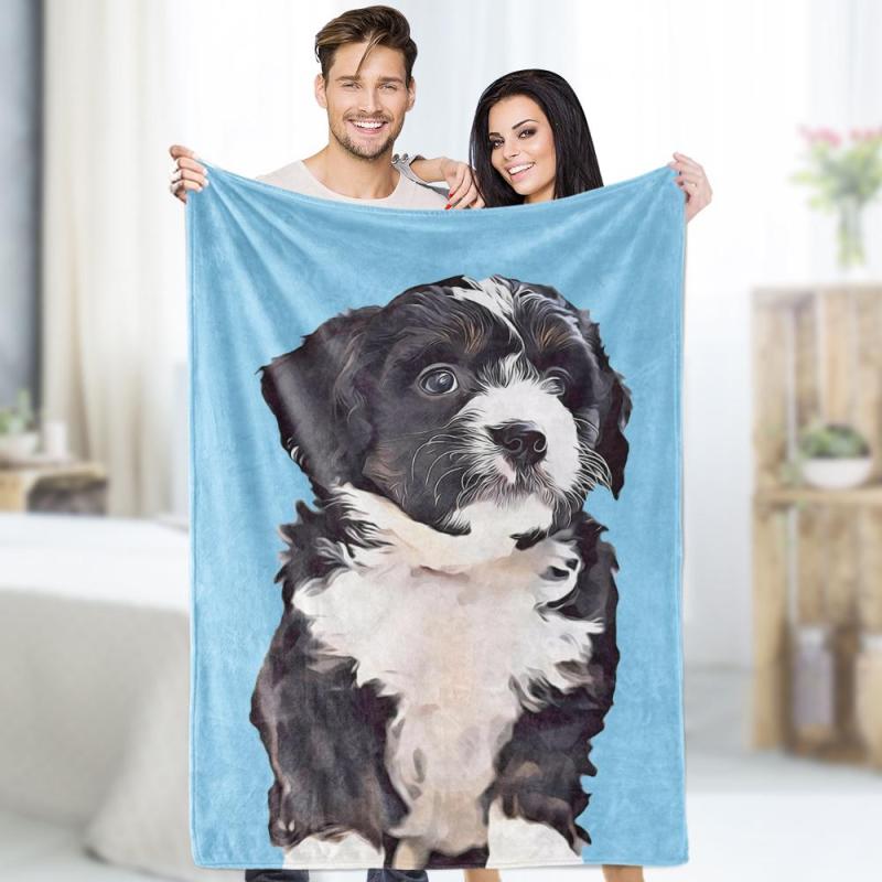 Custom Photo Dog Blankets Personalized Pet Fleece Blanket Painted Art Portrait