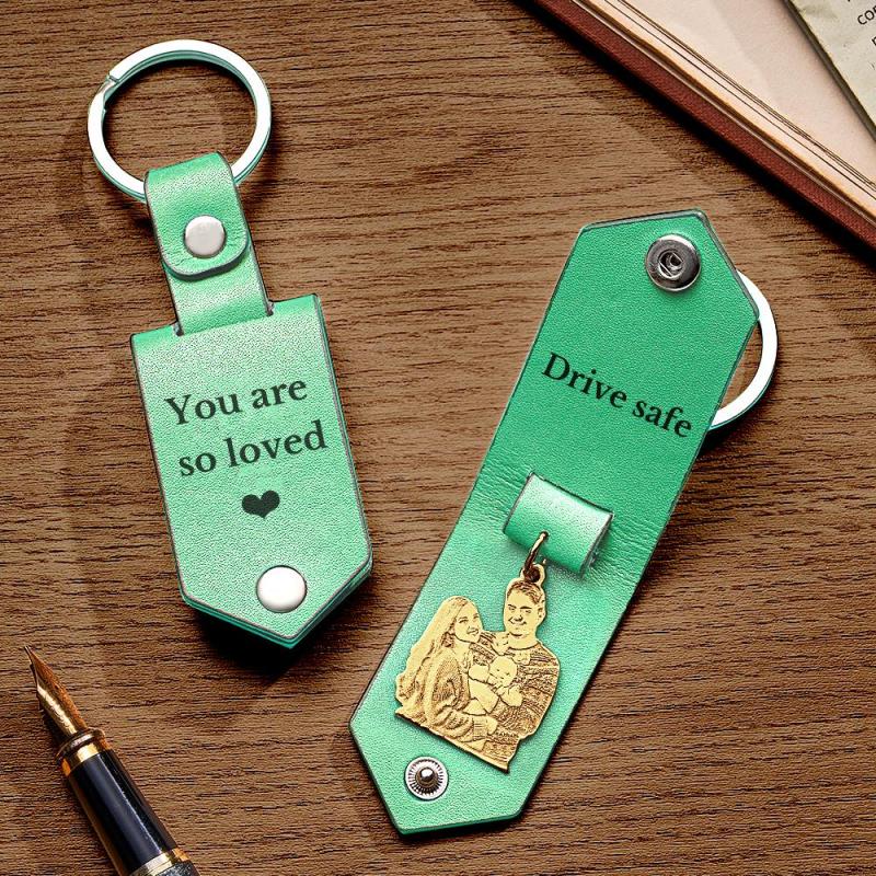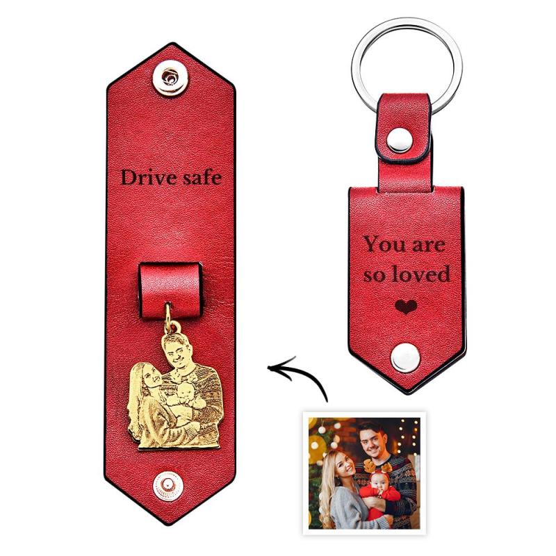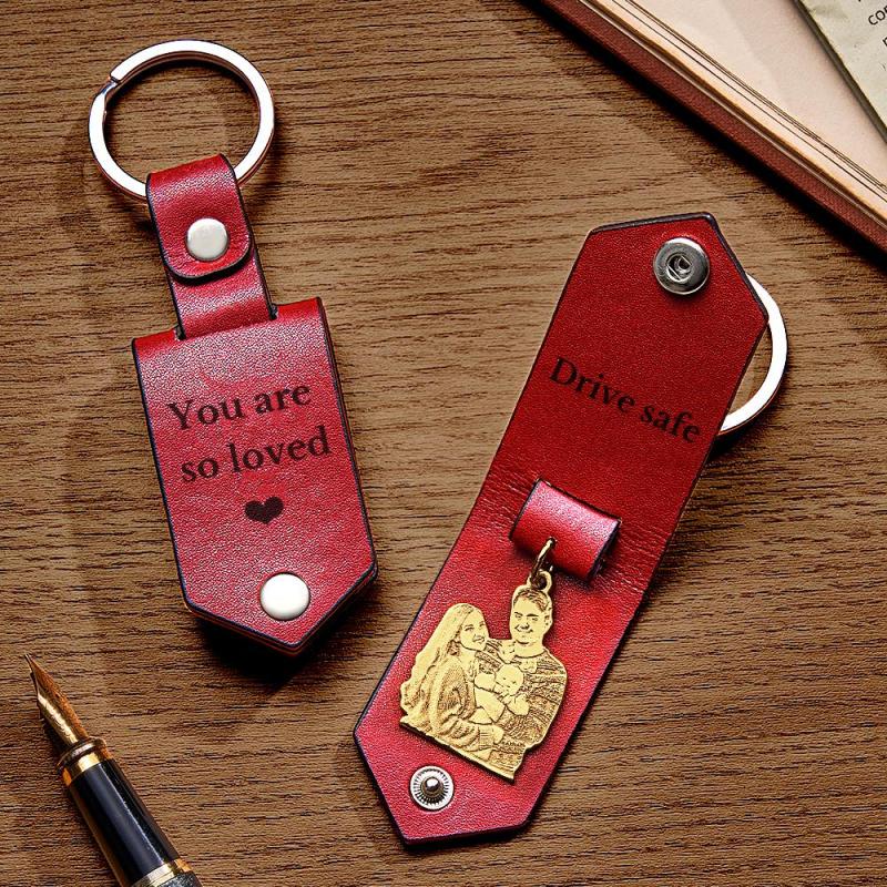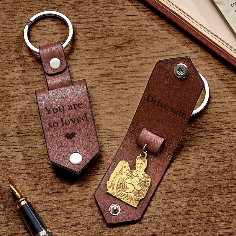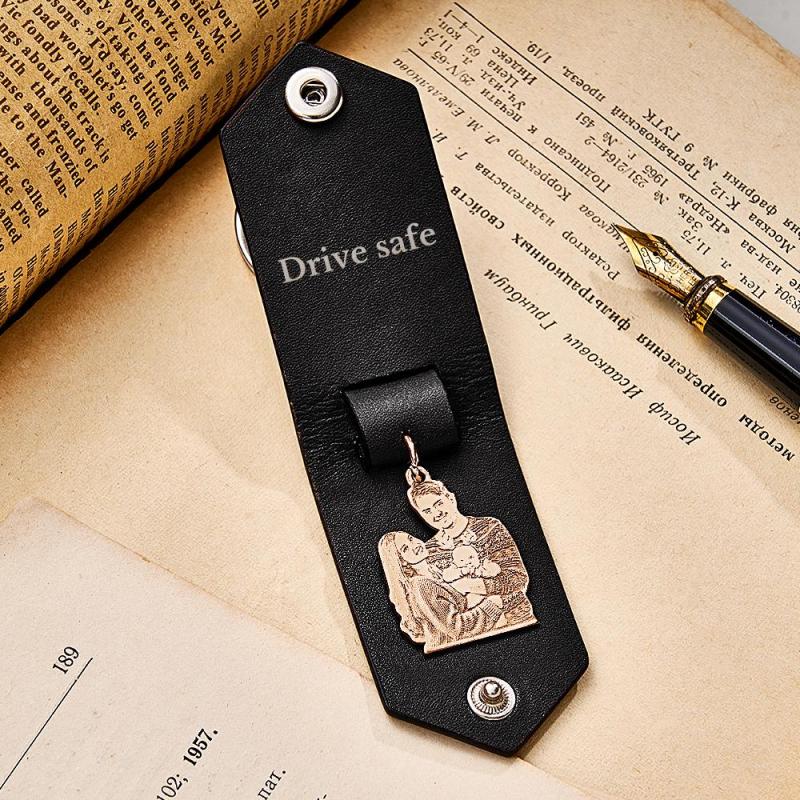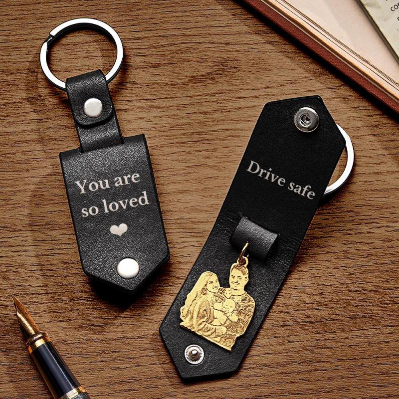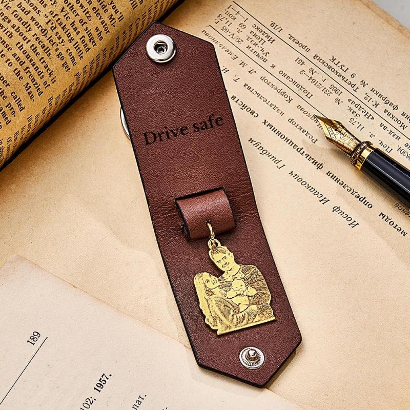 Custom Photo Leather Keychain With Text Annivesary Gifts For Men