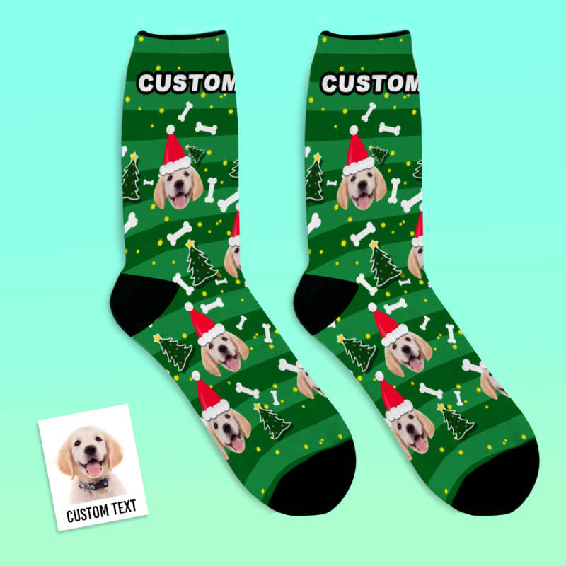 Custom Photo Socks Christmas Dog With Your Text