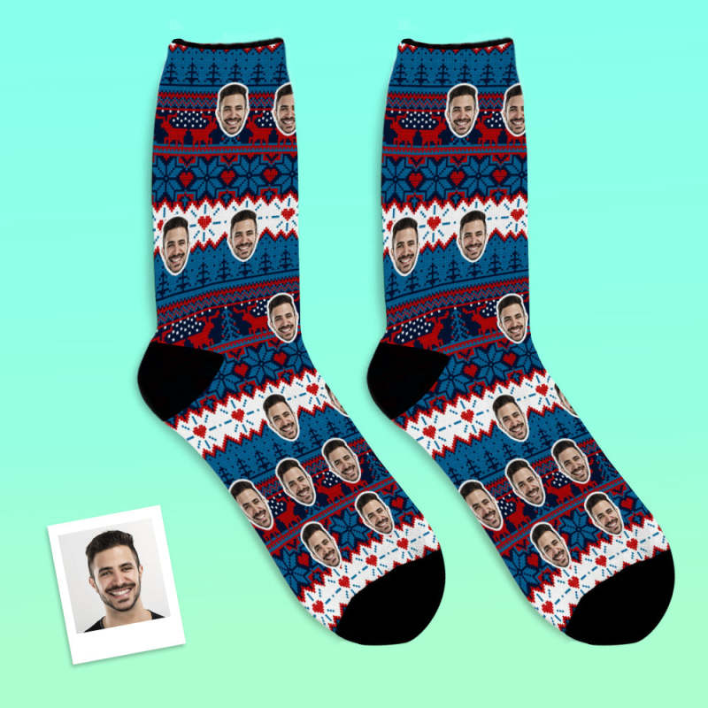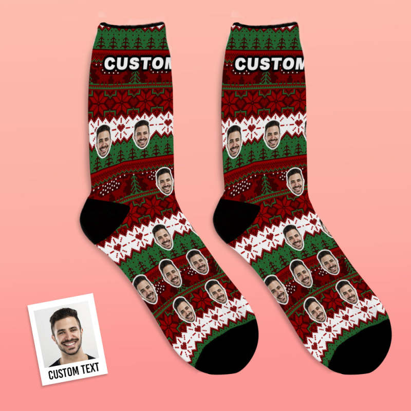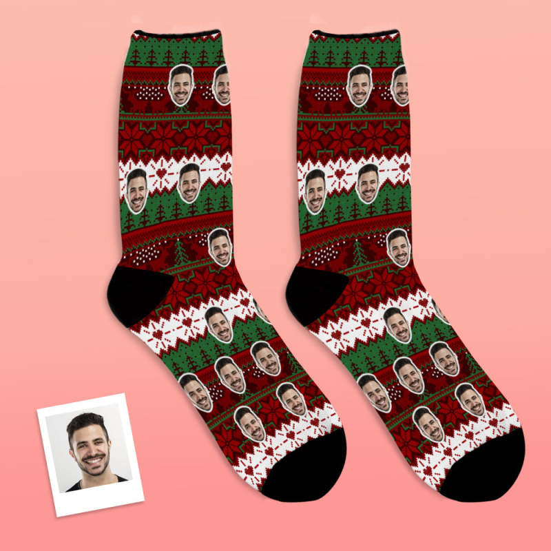Custom Photo Socks Christmas Vintage Pattern Socks