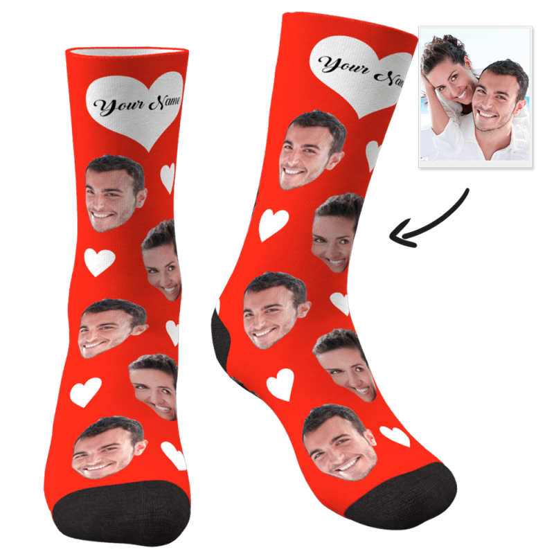 Custom Photo Socks Heart With Your Text