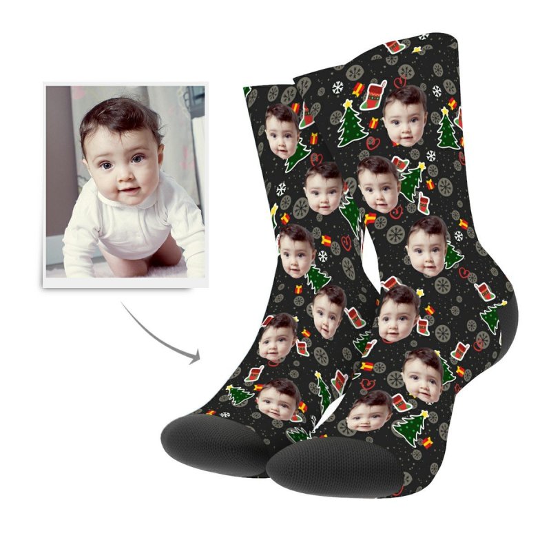 Custom Photo Socks Tree Hero Face Socks For Christmas