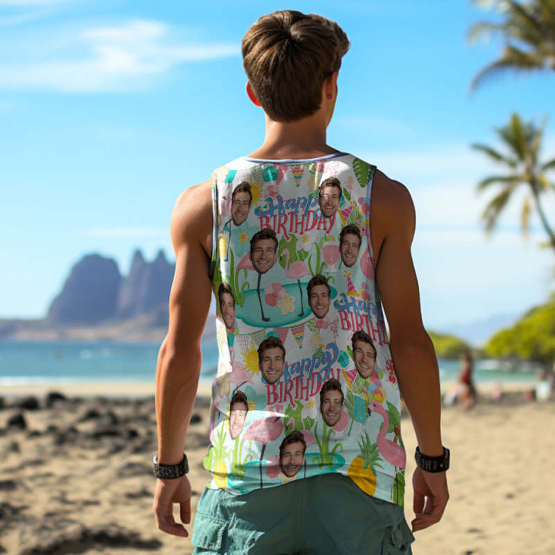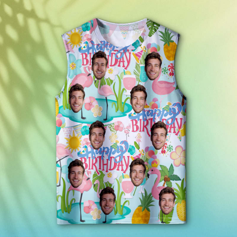 Custom Thick Face Tank Tops Men's Sleeveless Shirt Happy Birthday