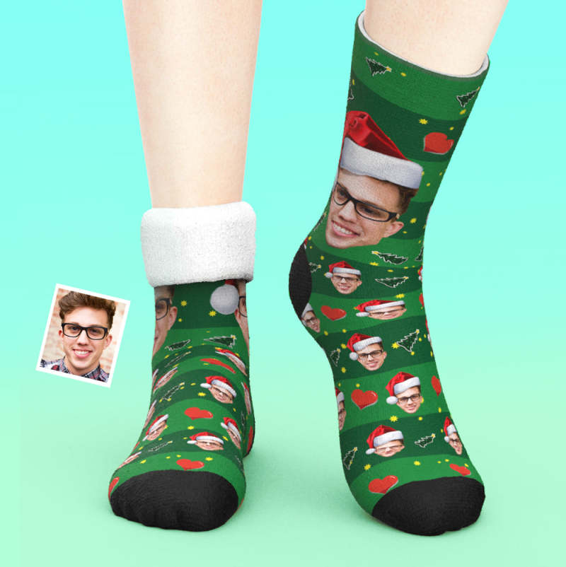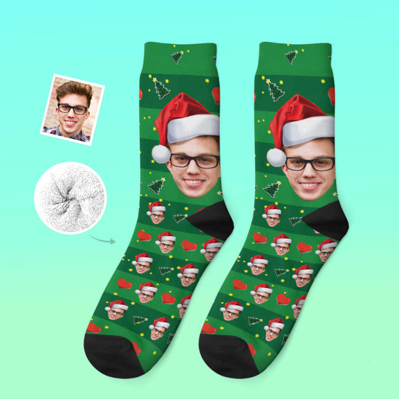 Custom Thick Socks Photo 3D Digital Printed Socks Autumn Winter Warm Socks Christmas Hat
