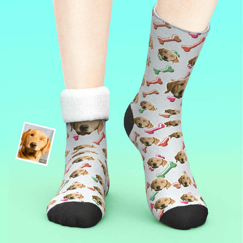 Custom Thick Socks Photo 3D Digital Printed Socks Autumn Winter Warm Socks Dog Face On Socks