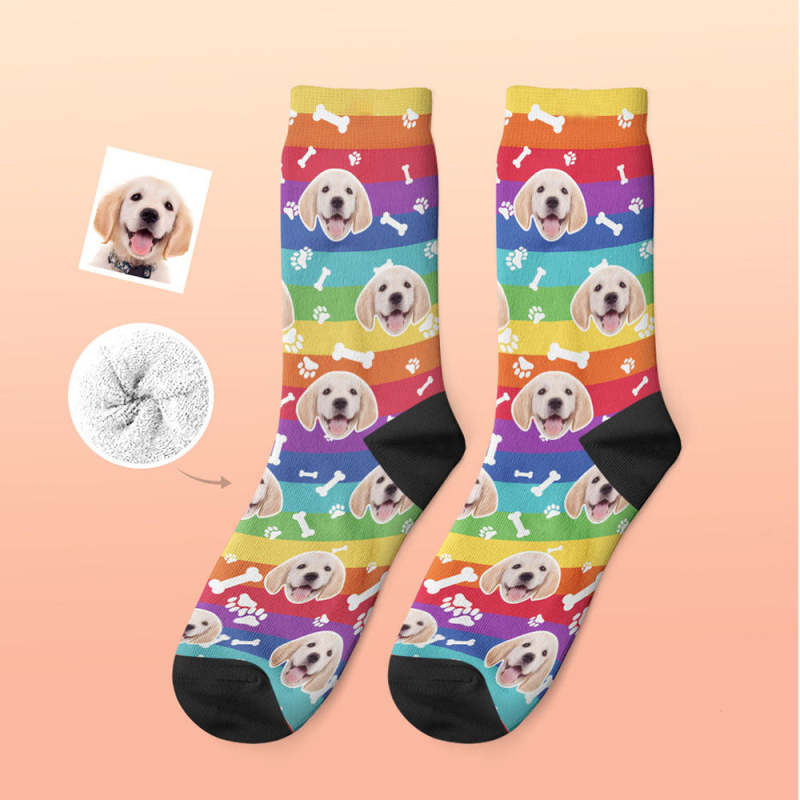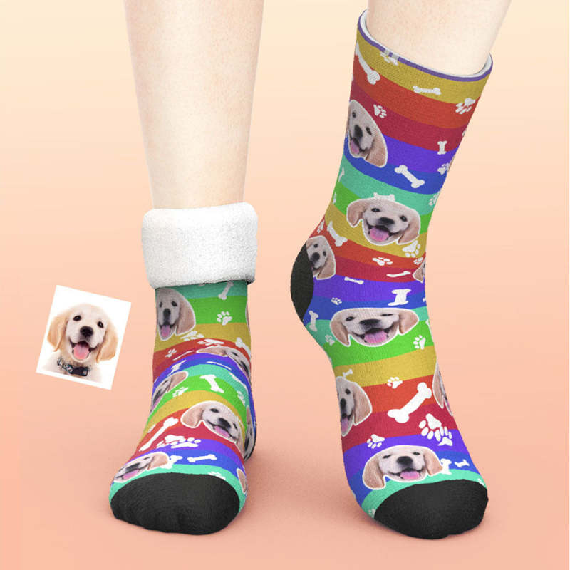 Custom Thick Socks Photo 3D Digital Printed Socks Autumn Winter Warm Socks Rainbow Dog