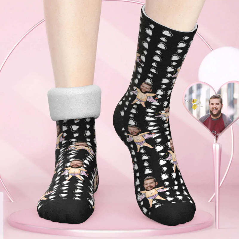 Custom Thick Socks Photo Autumn Winter Warm Socks Cupid Funny Socks Valentine's Day Gift