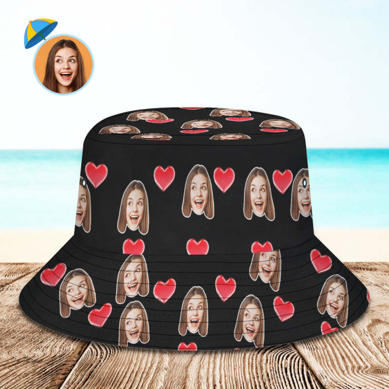 Custom Your Photo Face And Pet Summer Bucket Hat Fisherman Hat - Heart Black