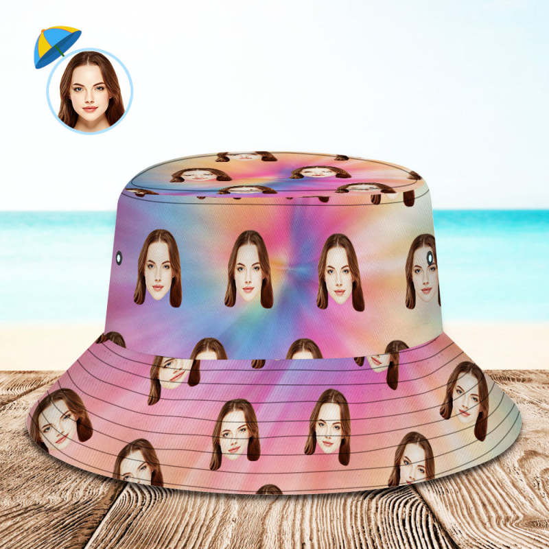 Custom Your Photo Face And Pet Summer Bucket Hat Fisherman Hat - Tie-dye