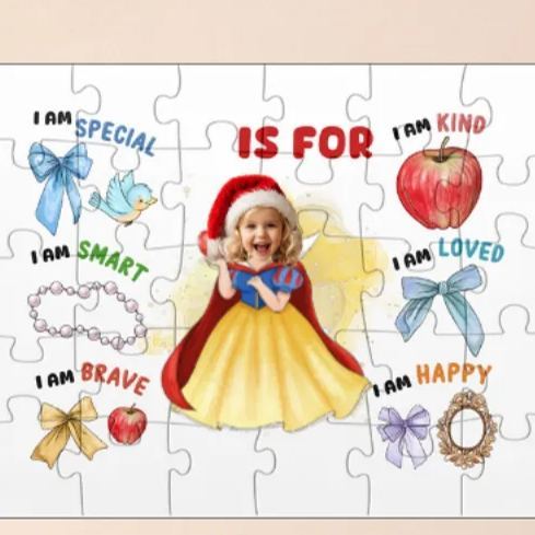 Delight your little princess with this enchanting personalized jigsaw puzzle that brings magic to playtime! Featuring a playful and vibrant design, this puzzle highlights beloved princesses and fun characters alongside your child’s name, creating a one-of-a-kind gift that she will cherish.