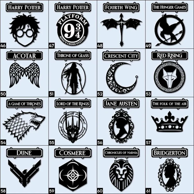 Each sign feels like it could be swinging above the doorway of a bustling tavern in your favorite novel, inviting travelers, dreamers, and book lovers to gather inside.