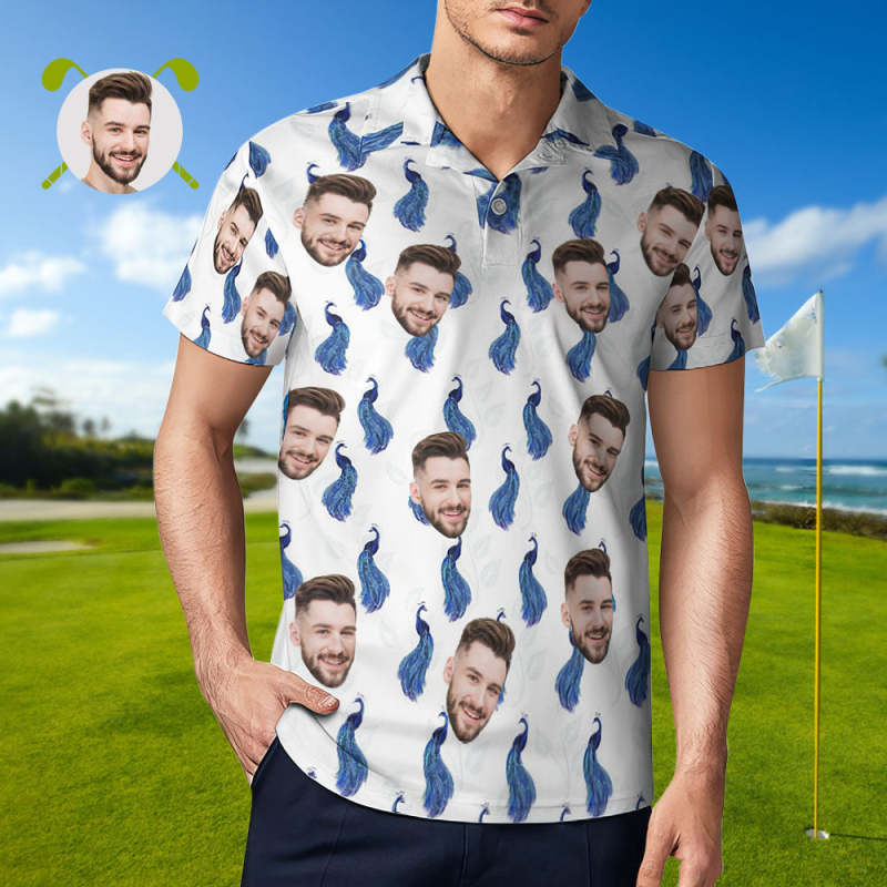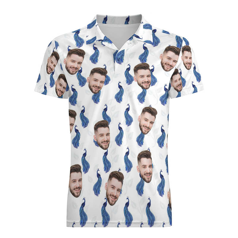 Men's Custom Face Shirt Personalized Golf Shirts Pink Royal Blue Peacock