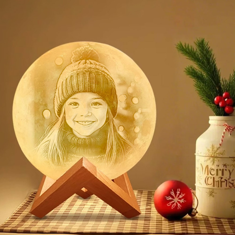 Personalized 3D Photo Moon Lamp & With Your Text - Touch 2 Colors