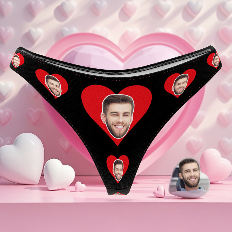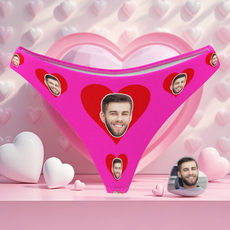 Personalize Mash Face Thong Hearts Custom Thong Gift for Her Valentine's Gift
