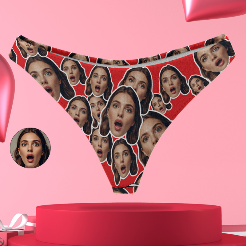 Personalize Pink Face Thong Mash Photo Panties Funny Underwear Briefs Valentine Gift For Her
